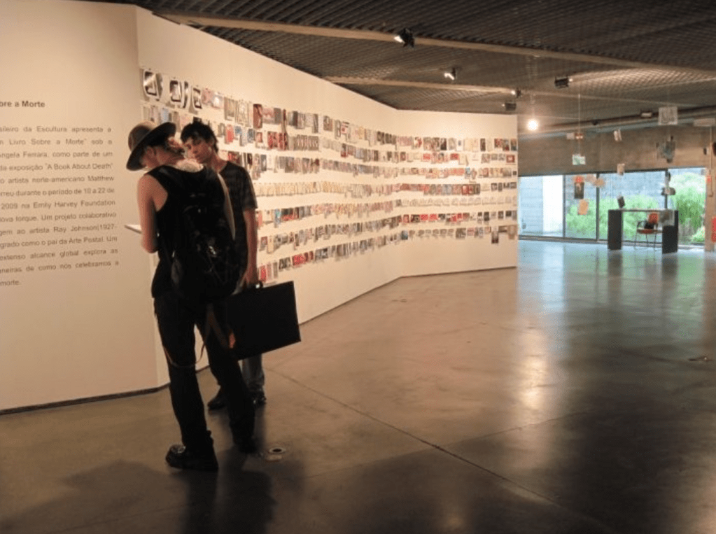 Exposição integrante do projeto internacional “A Book About Death”, concebido por Matthew Rose, desdobrado no Brasil como “Um Livro Sobre a Morte” sob a curadoria de Angela Ferrara. A mostra articulou arte postal, livro de artista e participação de criadores de diversos países em torno da memória da morte, reunindo centenas de obras em formato de cartões. O projeto estabeleceu diálogo entre rede global e contexto local, explorando formas de celebrar, narrar e ressignificar a experiência da perda e do luto.
